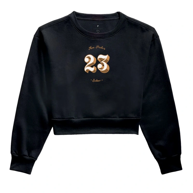 O moletom cropped feminino "Salmo 23" é uma peça de vestuário estilosa e confortável que une moda e fé.
